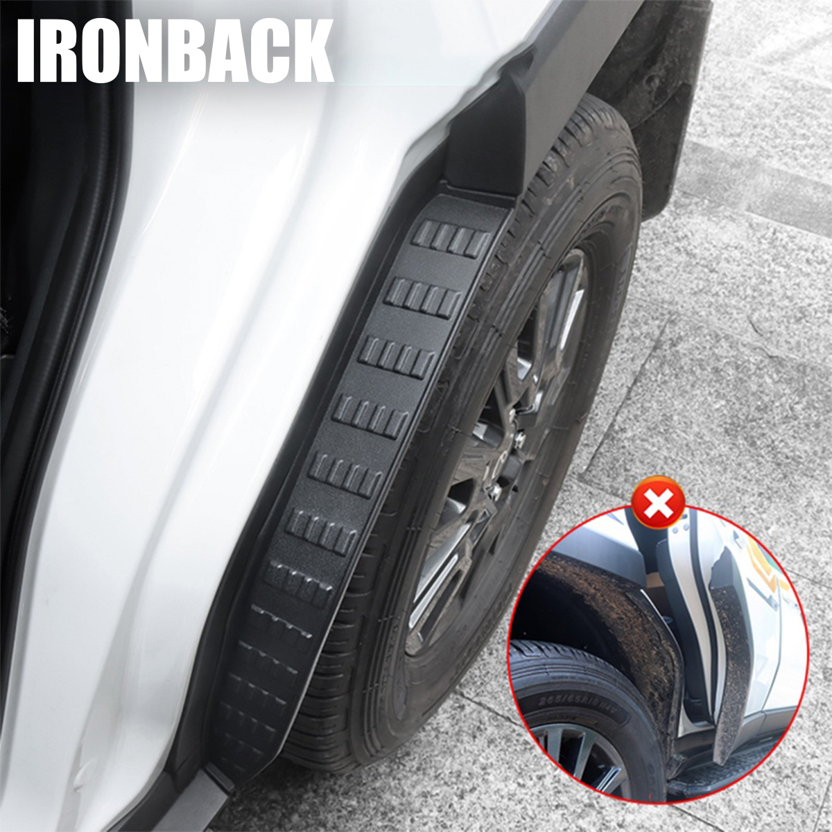 IRONBACKのリアドア用マッドフラップ。
